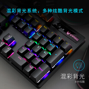 鼠标>>雷柏(Rapoo) V500PRO 机械键盘 有线键盘 游戏键盘 104键混光键盘 吃鸡键盘 电脑键盘 黑色 红轴