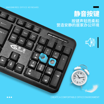 吉选(GESOBYTE)KB830USB键盘 有线键盘 办公键盘 静音 104键 防泼水 USB通用 笔记本电脑键盘 黑色