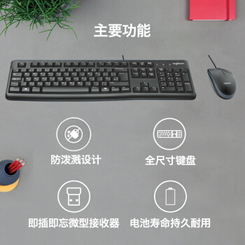 罗技(Logitech)MK120 键鼠套装 有线键鼠套装 办公键鼠套装 电脑键盘 笔记本键盘 联想全尺寸 黑色