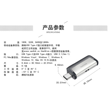 闪迪(SanDisk)128GB Type-C USB3.1 手机U盘 DDC2至尊高速版 读速150MB/s 便携伸缩双接口 智能APP管理软件 |