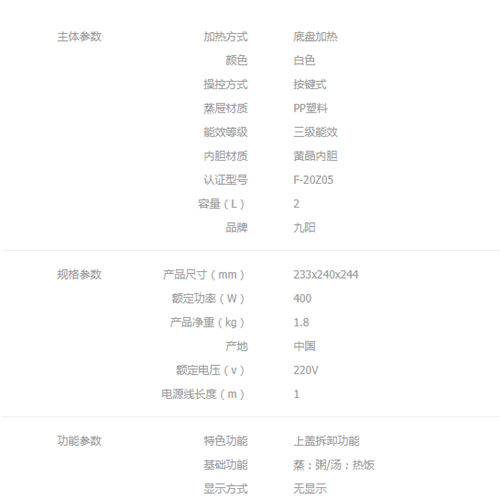 F-20Z05电饭煲【硅晶内胆/白】