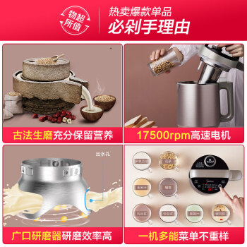 美的(Midea)17500高转速破壁免滤豆浆机容量可调滤网可拆搅拌机可做米糊果汁DJ12B-P401(李现同款)