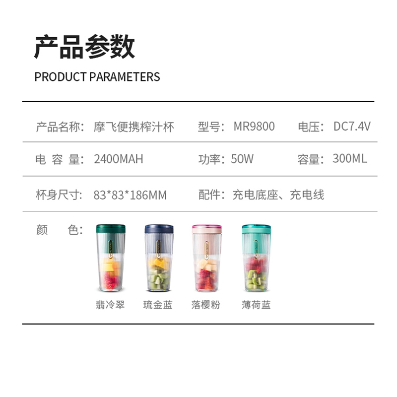 摩飞新品 榨汁杯家用水果迷你小型果汁杯电动便携式炸果汁机无线榨汁机【PCTG/琉金蓝】