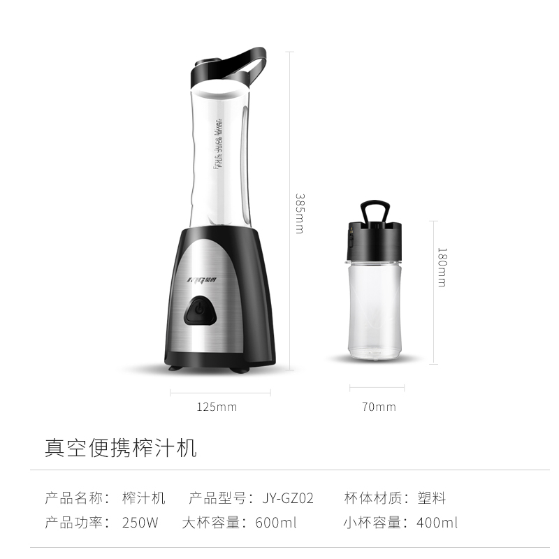 便携式真空果蔬榨汁机(双杯)【塑料/黑色】