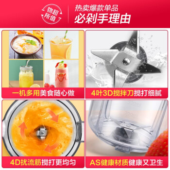 美的(Midea)料理机家用 多功能双杯榨汁机可果汁搅拌研磨辅食WBL25B26(李现推荐)