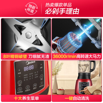 美的(Midea)破壁机高温熬煮加热破壁料理机 家用研磨器 绞肉馅机果汁机榨汁机婴儿辅食机WBL1022S