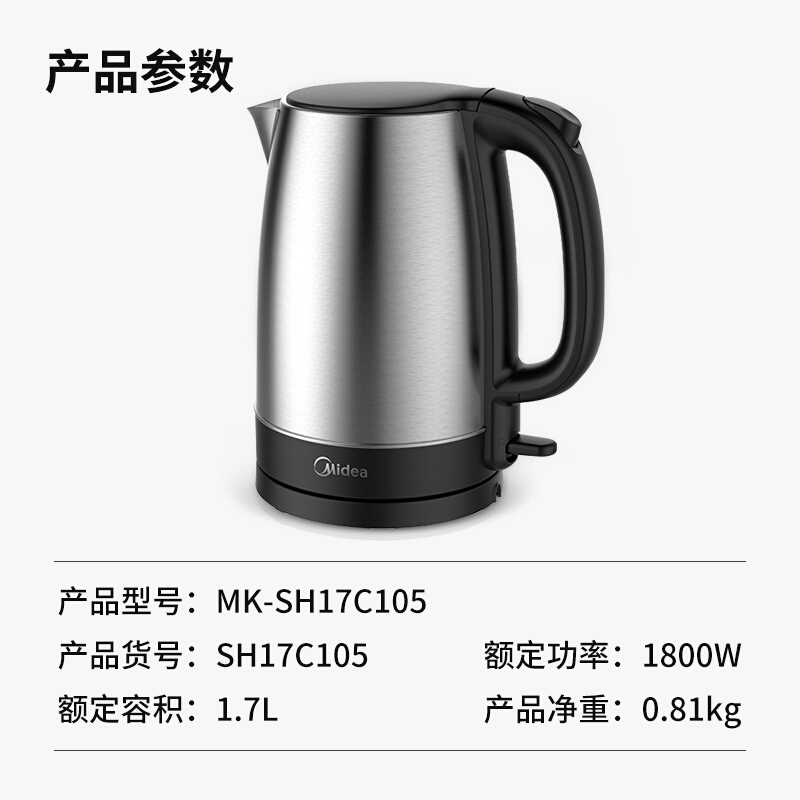 美的电热水壶烧水壶SH17C105【ABS+电子元件/黑色】