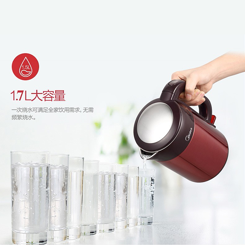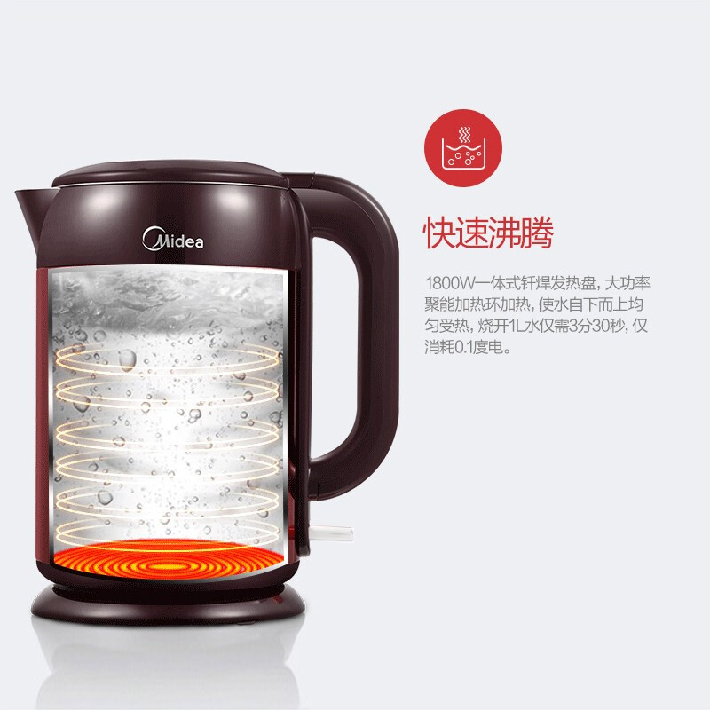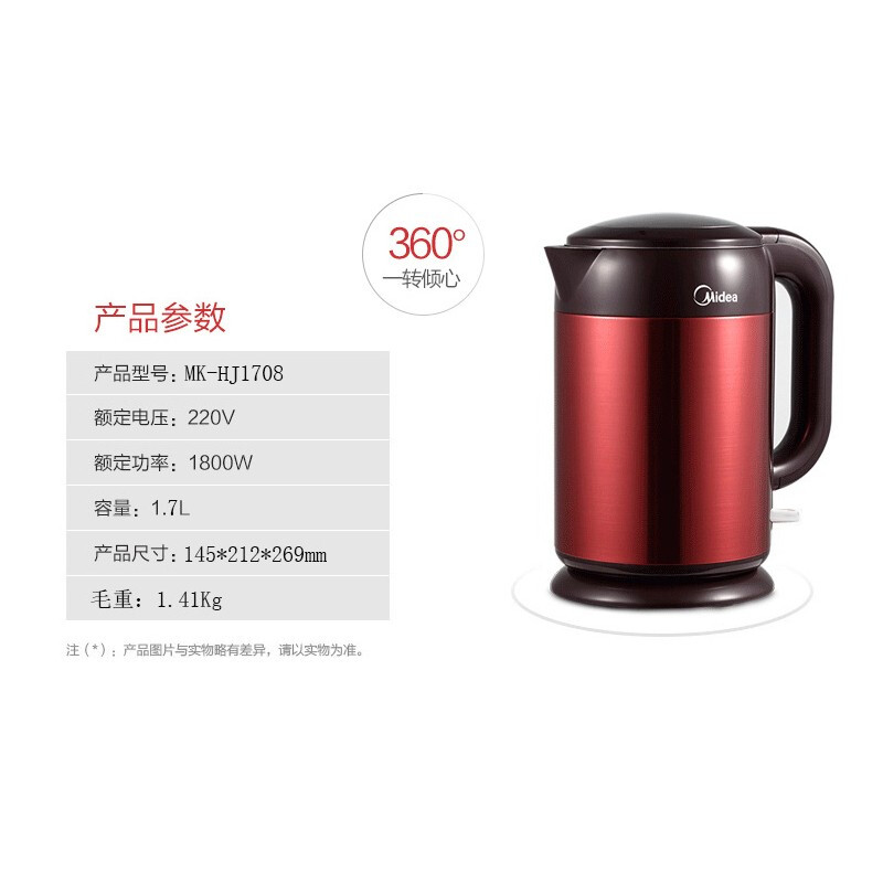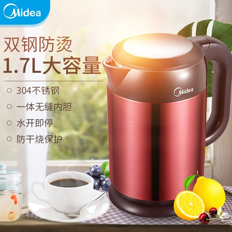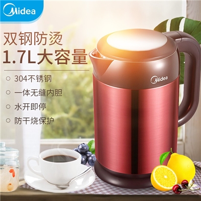 HJ1708家用双层防烫电热水壶【ABS+PC/红色】