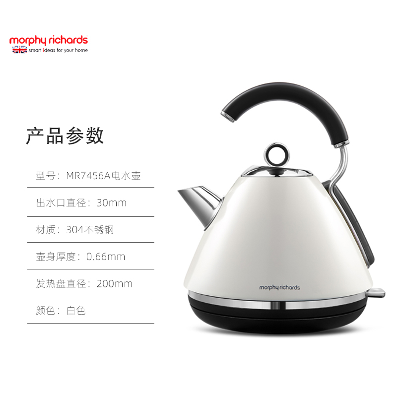 摩飞电水壶MR7456A家用英伦品质电热水壶【不锈钢/白色】
