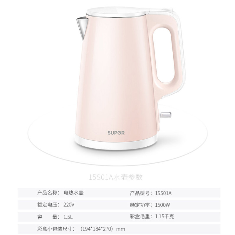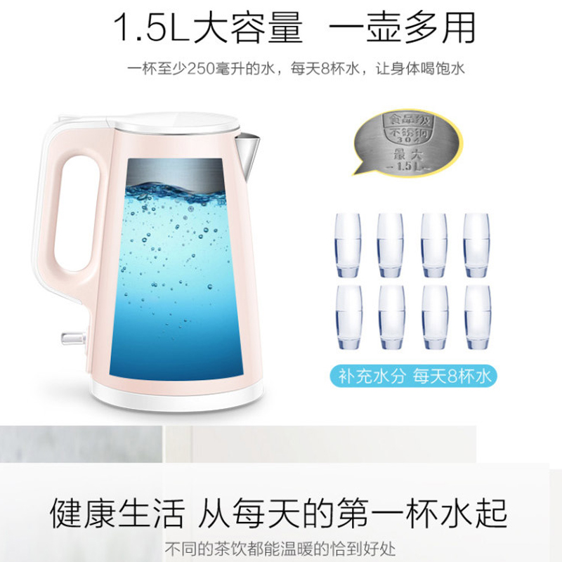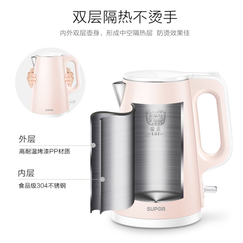 SW-15S01A电热水壶1.5L【304不锈钢/粉色】