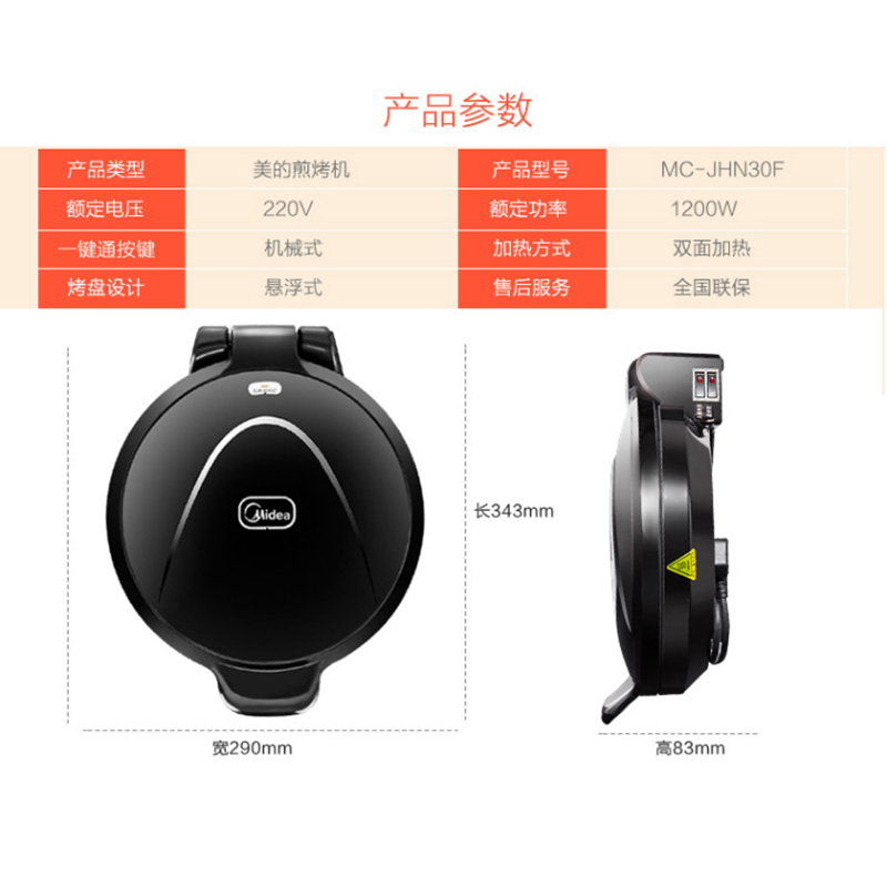 美的(Midea)电饼铛家用双面加热煎烤机烙饼机【其他/黑色】