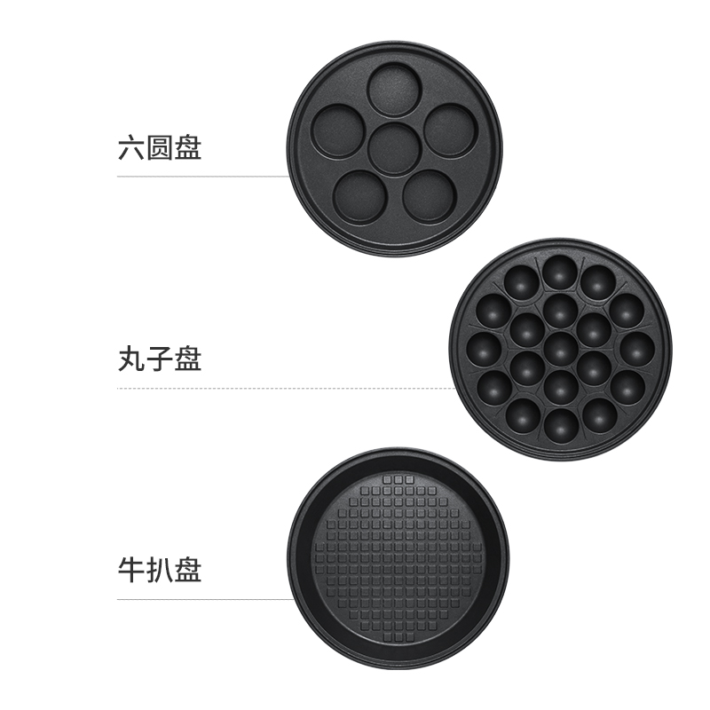 摩飞MR9089多功能圆锅配件--六圆盘、丸子盘、牛扒盘【ABS/黑色】