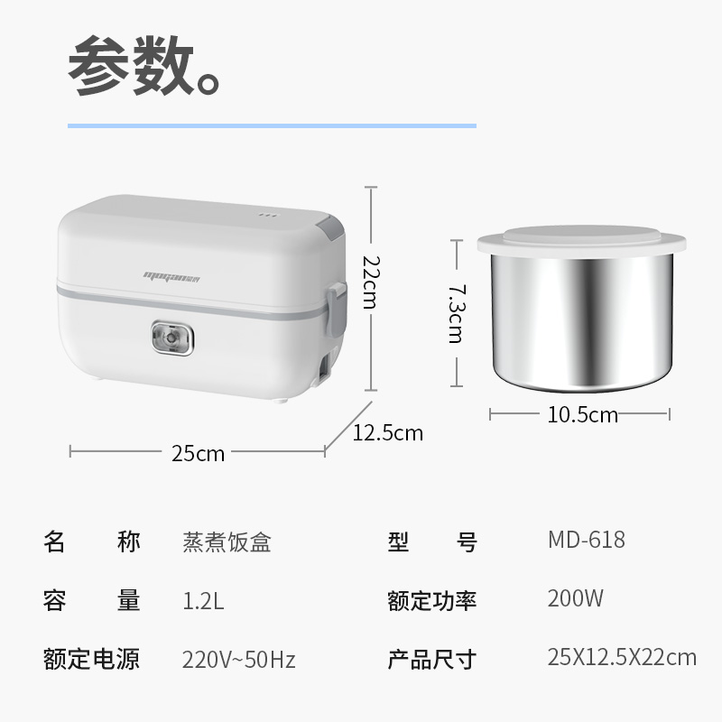 不锈钢内胆防干烧电热饭盒【食品级不锈钢/白色】