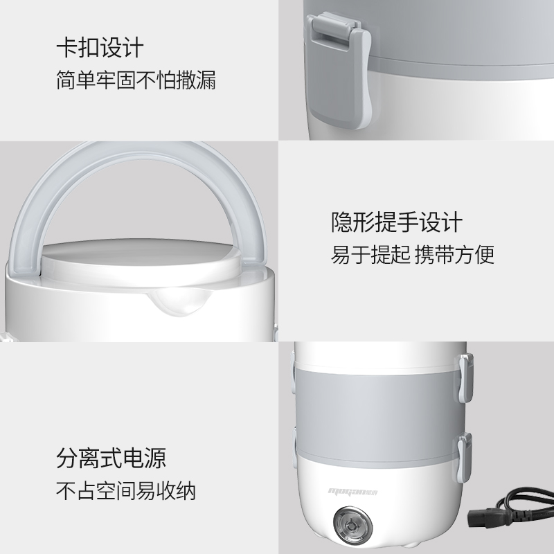 大容量三层防干烧自动断电电热饭盒【食品级不锈钢/白色】