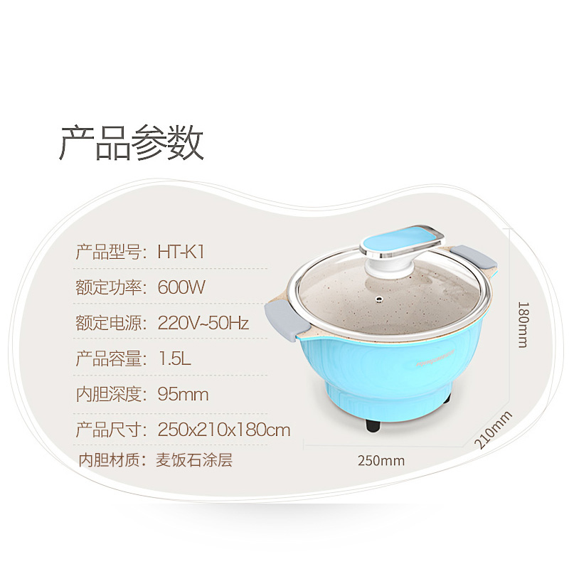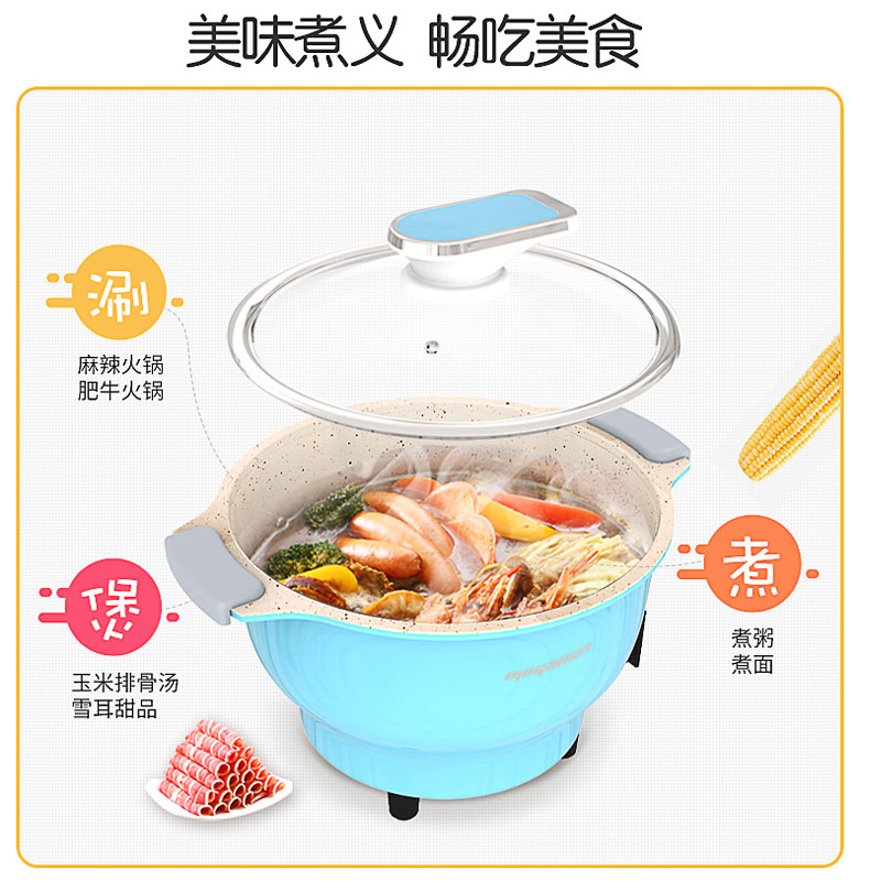家用多功能电火锅【麦饭石涂层/蓝色】