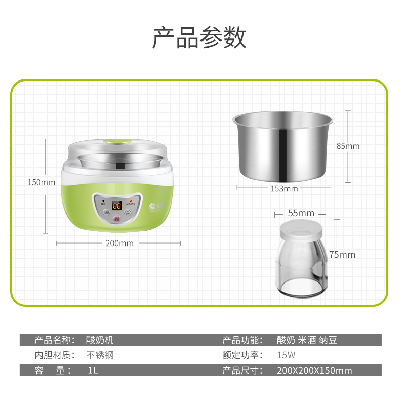 智能纳豆米酒酸奶机(赠4玻璃分杯)【不锈钢/白色】