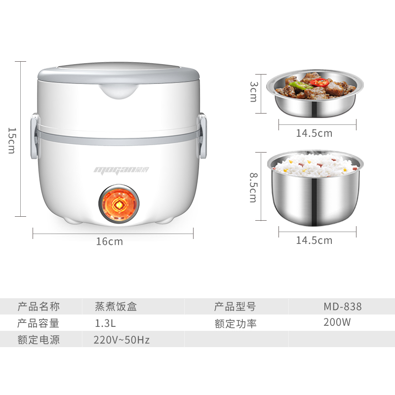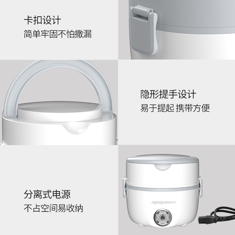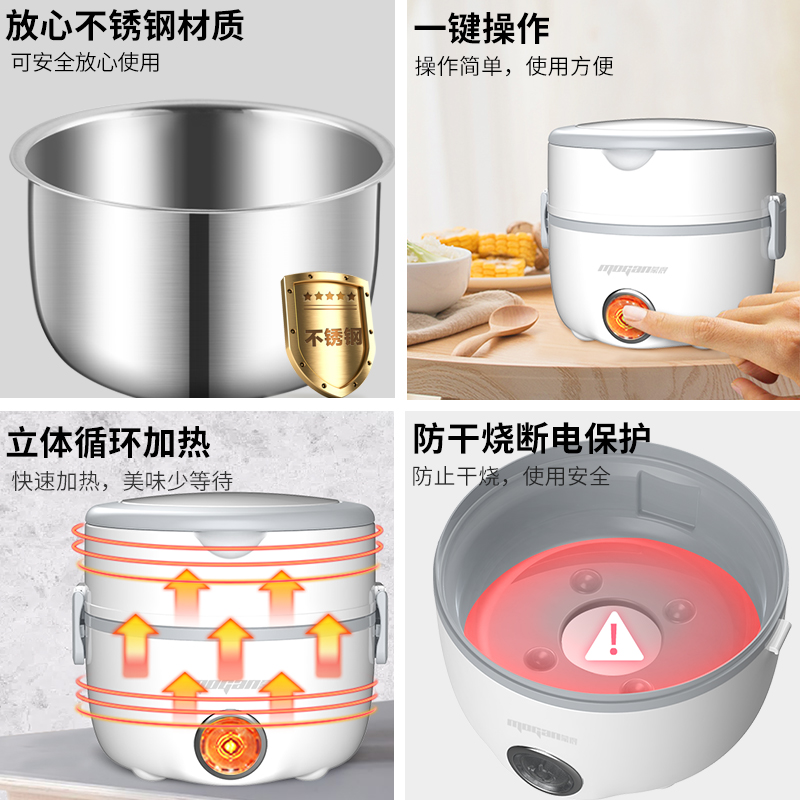 防干烧自动断电双层饭盒【食品级不锈钢/白色】