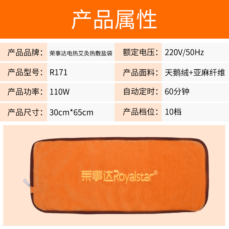 电热艾灸热敷盐袋【天鹅绒50%亚麻纤维50%/橘黄色】