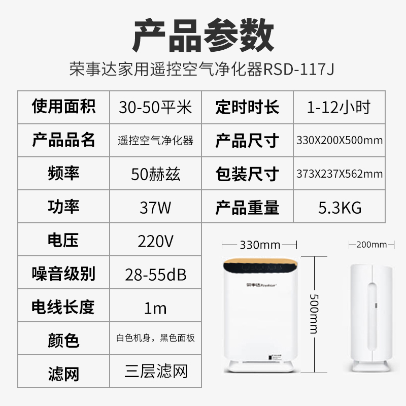 荣事达家用遥控空气净化器【100%塑料/白色】