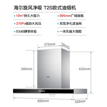 油烟机>>海尔(Haier)抽油烟机 欧式 家用 大吸力 一级能效 吸油烟机 CXW-200-E900T2S