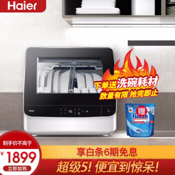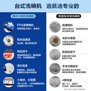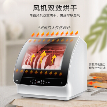 洗碗机>>海尔(Haier)小海贝台式除菌洗碗机6套 变频直驱电机 离子软水 加强烘干 易安装台式 HTAW50STGB
