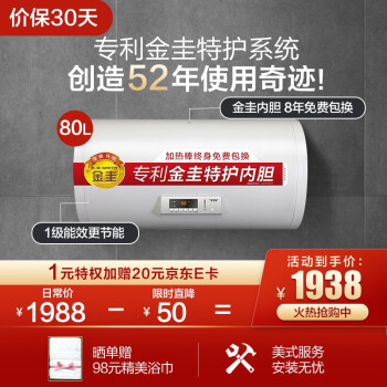 热水器>>史密斯(A.O.SMITH)80升电热水器 专利金圭内胆 8年免费包换 速热节能保温款 一级能效 预约洗浴 CEWH-80A0