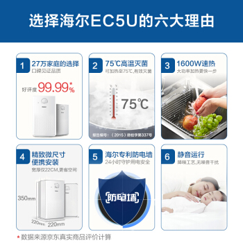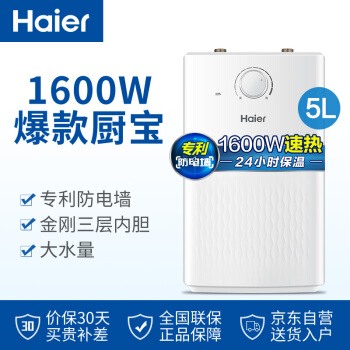 海尔(Haier)5升家用上出水小厨宝1600W厨房速热小型电热水器专利防电墙EC5U