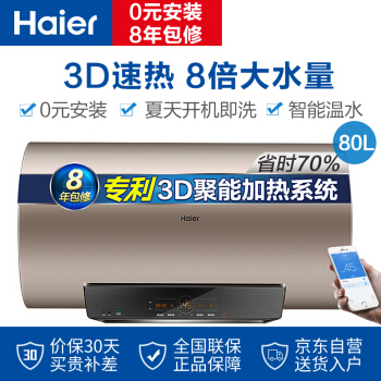 热水器>>海尔(Haier)80升电热水器 3D速热 8倍增容 WIFI遥控 一级能效节能抑菌专利2.0防电墙EC8005-ST5