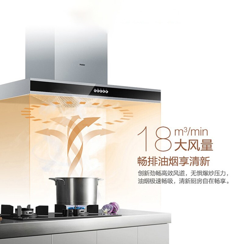 嵌入式厨电>>Haier/海尔 CXW-200-E900T6V 18m3/min顶吸式油烟机 单机油烟机【不锈钢/银色】