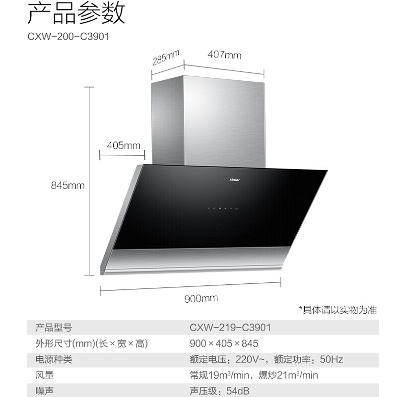 Haier/海尔油烟机CXW-219-C3901智慧免清洗350Pa大风压高层专用【钢化玻璃/黑色】