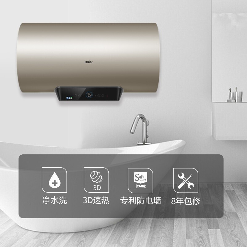 嵌入式厨电>>Haier/海尔 ES60H-KA5(5AU1) 电热水器3D速热60升 智能预约恒温储水式家用 一级能效【不锈钢/金色】