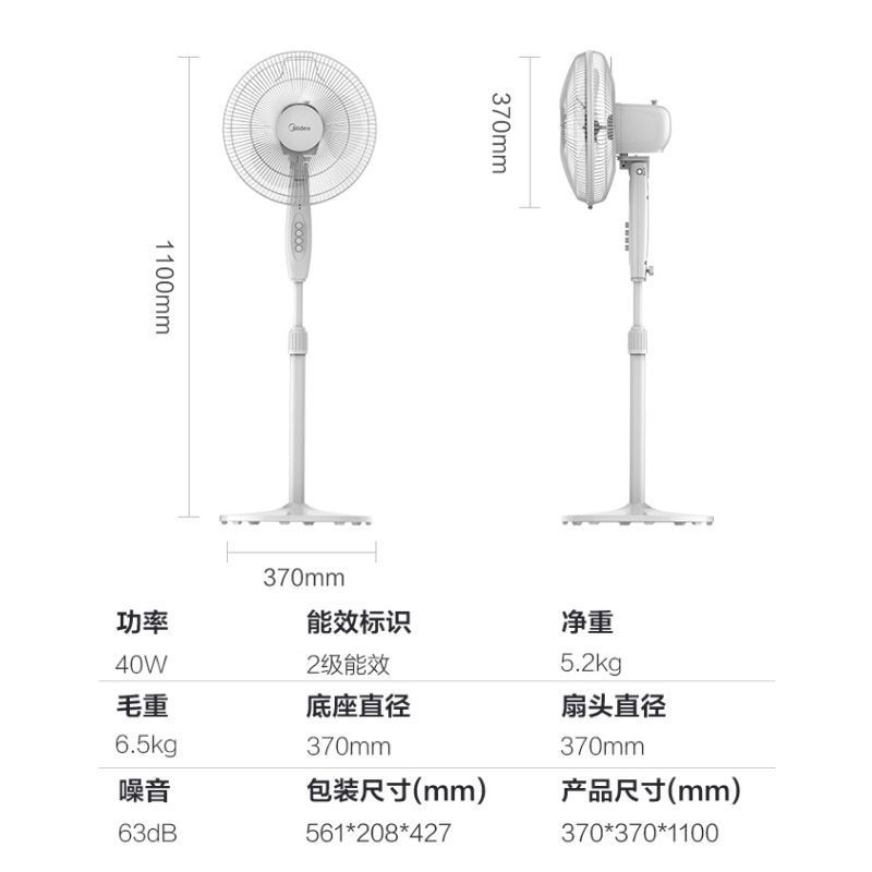 美的立式家用电风扇静音机械三叶落地扇FSA30YD【ABS+电子元件/白】
