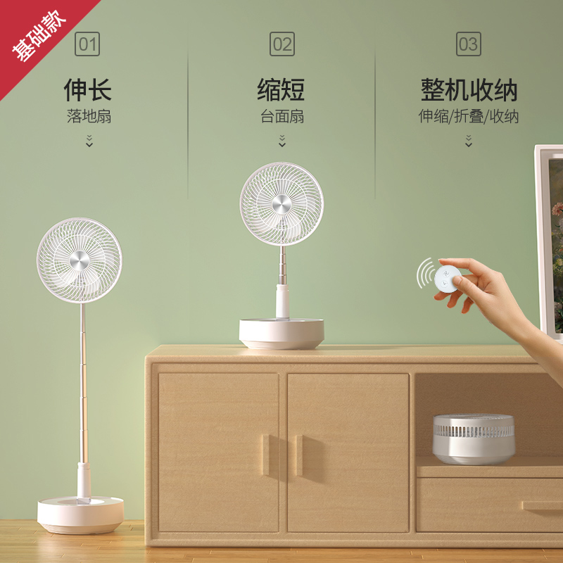 edon爱登 风扇E908悬浮收纳落地扇静音遥控台式充电空气循环扇伸缩折叠【基础款】可摇头+定时+遥控【ABS材质/白色】