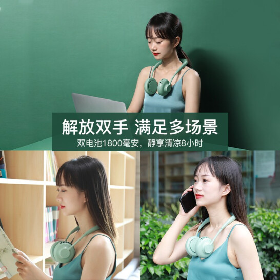 2020新款 挂脖风扇无叶USB超静音电风扇【ABS/牛油绿】