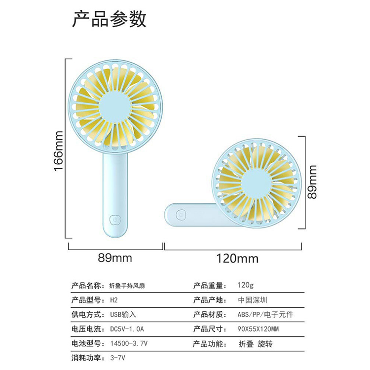 便携式折叠小风扇桌面风扇(3个装)【ABS/粉色+白色+浅蓝】