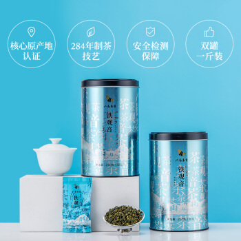 八马茶业 茶叶 乌龙茶 安溪清香型铁观音 双蓝罐装 500g