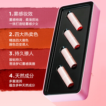 卡姿兰(Carslan)轻甜唇爱随心盒(口红套盒套装 雾感哑光唇膏 持久保湿 生日礼物送礼)1.4g*4