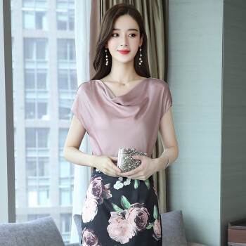 凝拉衬衫女短袖上衣V领气质雪纺衫2020夏季新款衬衣女韩版大码时尚职业装洋气宽松打底衫 粉色 2XL(建议130-145斤)