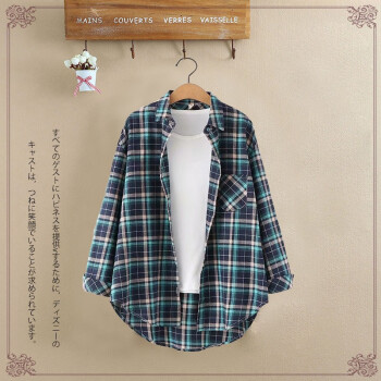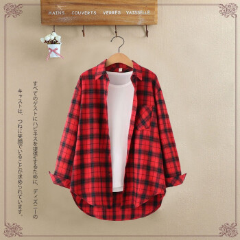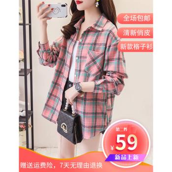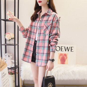 得听衬衫女2020秋装新款磨毛棉格子衬衫女秋夏季复古港味学生宽松休闲通勤百搭大码纯棉上衣女长袖外套 粉色格子(9号) M(100-115斤)