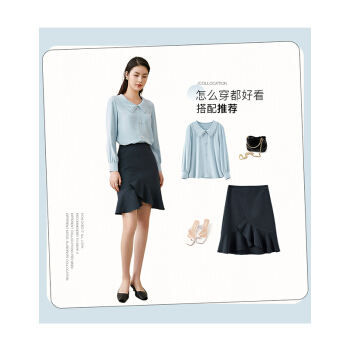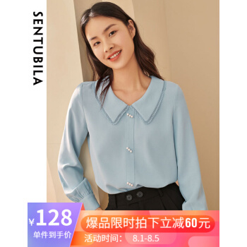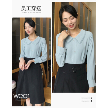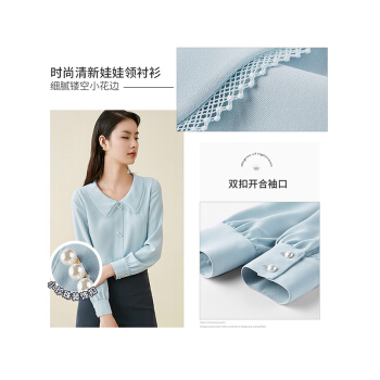 尚都比拉长袖女士衬衫2020秋装新款小花边娃娃领职业风雪纺珍珠扣上衣 浅灰蓝 M
