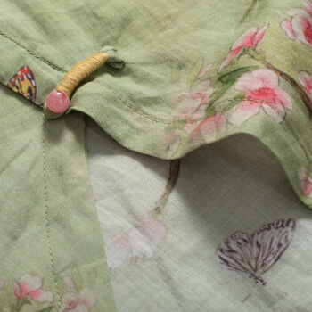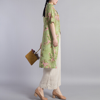 衬衫>>龙芝美 衬衫女2020夏季新款中国风改良汉服不规则复古珠扣苎麻印花立领宽松棉麻衬衣上衣 L1-BH452-8995-上衣图片色 XL