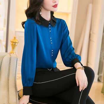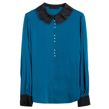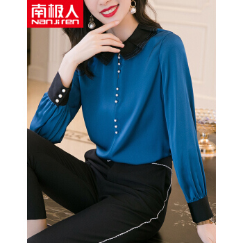 南极人 长袖衬衫女2020夏季新款女装时尚撞色绣花娃娃领衬衣原创设计纯色打底小衫上衣潮 N4-NRB42-5269-蓝色 M