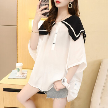 小赖猴娃娃领雪纺衬衫女中长款夏季2020新款韩版宽松大码洋气减龄上衣薄 白色 均码