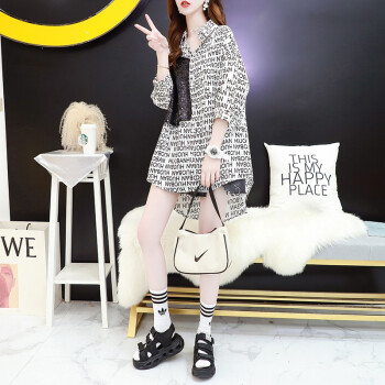 小赖猴字母印花五分袖衬衫女中长款夏装2020新款宽松设计感休闲亮片衬衣 白色 均码