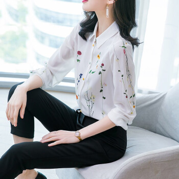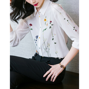 南极人 雪纺衬衫女长袖2020夏季新款时尚洋气女装雪纺小衫浪漫印花宽松小衫气质上衣潮 N4-NRA52-033-白色 M |