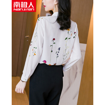 衬衫>>南极人 雪纺衬衫女长袖2020夏季新款时尚洋气女装雪纺小衫浪漫印花宽松小衫气质上衣潮 N4-NRA52-033-白色 M