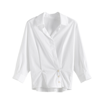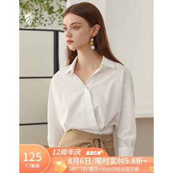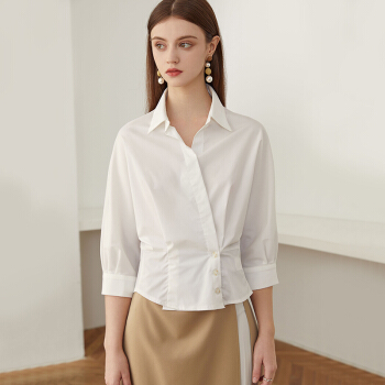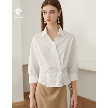 范思蓝恩 2020夏新款气质领上衣连袖衬衫女七分袖衬衣 白色 M