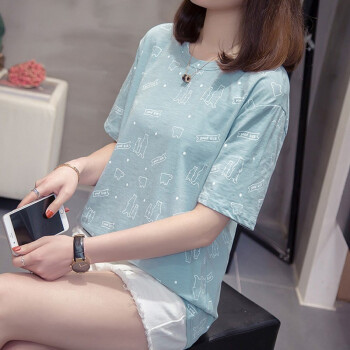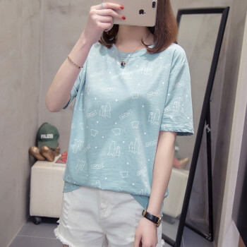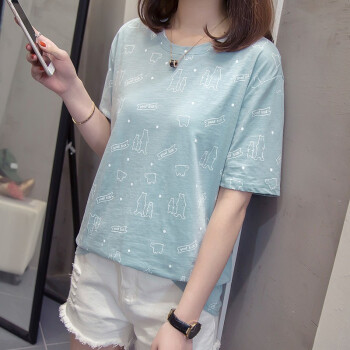 短袖T恤>>莺飞雪短袖t恤女2020夏季新款韩版宽松休闲学生大码女装显瘦百搭上衣打底衫女 浅蓝色8862 XXL(建议135-150斤)