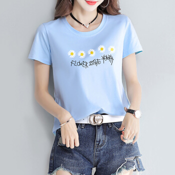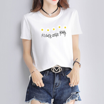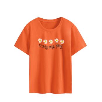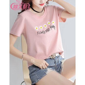 欧芙伦t恤女短袖2020新款宽松印花小雏菊简约时尚体恤上衣潮A0163 粉色 M