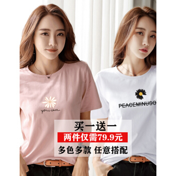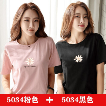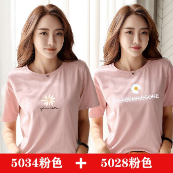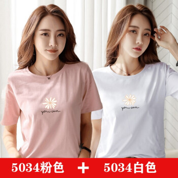 【两件装】知语者女装短袖t恤女小雏菊花T恤2020夏季新款上衣宽松版体恤纯棉圆领百搭上衣大码装 5034粉色+5028白色 L《105-115斤》